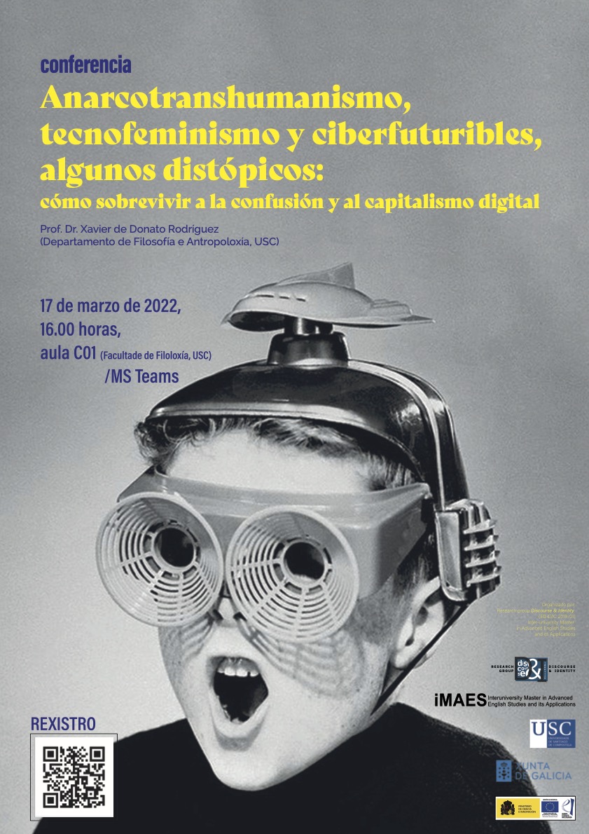 Prof. Xavier de Donato (Departamento de Filosofía e Antropoloxía da USC) pronunciará a conferencia «Anarcotranshumanismo, tecnofeminismo y ciberfuturibles, algunos distópicos: cómo sobrevivir a la confusión y al capitalismo digital».